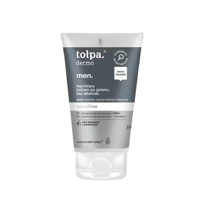 Następną propozycją w zestawieniu jest łagodzący balsam po goleniu TOŁPA Dermo Men – produkt przeznaczony do pielęgnacji skóry wrażliwej, bardzo wrażliwej oraz alergicznej. Jego bezalkoholowa formuła opiera się na nowoczesnym kompleksie składników aktywnych, które wspierają regenerację skóry i redukują oznaki podrażnień. W składzie znajduje się torf tołpa.®, olej konopny, ekstrakt z aloesu oraz Repair Complex CLR™ PF. Warto dodać, że zastosowano tutaj połączenie postbiotyku i lizatu bakterii probiotycznych, które wspierają mikrobiom skóry i odbudowują jej naturalną barierę ochronną. Kosmetyk łagodzi zaczerwienienia, niweluje uczucie ściągnięcia i przynosi natychmiastowe ukojenie po goleniu. Co więcej, ten balsam po goleniu poprawia elastyczność naskórka i przyspiesza proces regeneracji mikrouszkodzeń. To doskonały wybór dla mężczyzn, którzy szukają skutecznego, a przy tym naturalnego rozwiązania do codziennej pielęgnacji skóry po goleniu.