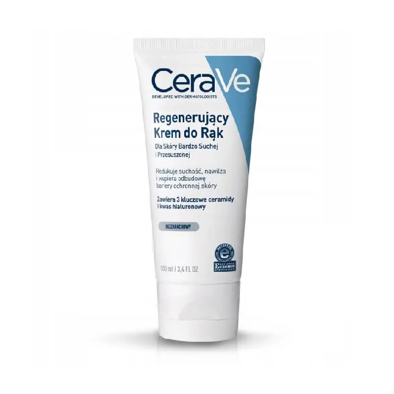 Następne miejsce w rankingu najlepszych kremów do suchych rąk zajmuje CeraVe. Kosmetyk dedykowany jest szczególnie do bardzo suchej skóry, jak i tej przesuszonej. Kosmetyk wykazuje działanie silnie nawilżające. Co więcej, w składzie znajduje się kompleks takich składników aktywnych jak kwas hialuronowy, jak również 3 kluczowe ceramidy. Dzięki temu krem do rąk suchych CeraVe dodatkowo wspiera odbudowę naturalnej bariery hydrolipidowej naskórka. Na dodatek wspiera regenerację uszkodzonej i suchej skóry. Warto dodać, że doskonale sprawdzi się do dłoni codziennie narażonych na czynniki zewnętrzne, takie jak deszcz i mróz. Dużym atutem jest jego bezzapachowa formuła, dzięki czemu będzie akceptowalny dla większości osób. Na zakończenie warto wspomnieć, że prezentowany krem marki CeraVe cieszy się uznaniem i licznymi opiniami wśród zadowolonych użytkowników.