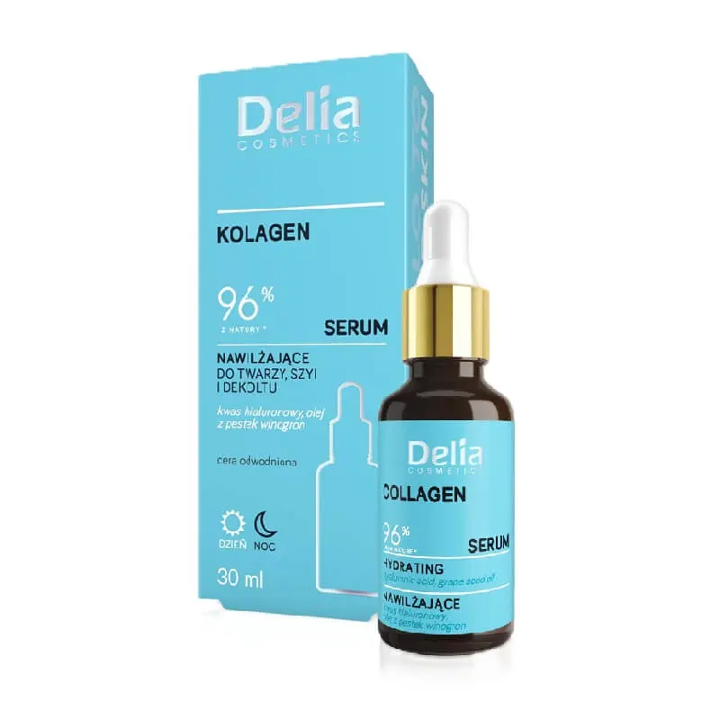 Kolejne miejsce w rankingu na 2026 rok zajmuje serum z kolagenem marki DELIA. Kosmetyk zawiera aż 96% składników pochodzenia naturalnego! Co więcej, oferuje skoncentrowaną dawkę kolagenu, która realnie wpływa na jędrność i nawilżenie skóry twarzy, szyi oraz dekoltu. Formuła została opracowana z myślą o osobach z cerą suchą, odwodnioną lub dojrzałą, które chcą przywrócić skórze sprężystość i zredukować widoczność zmarszczek. Co istotne, w tym kosmetyku zastosowano połączenie naturalnego kolagenu, oleju z pestek winogron oraz kwasu hialuronowego. To z kolei sprawia, że kosmetyk nie tylko intensywnie nawilża, ale również wzmacnia barierę ochronną i przywraca skórze elastyczność. Dzięki lekkiej konsystencji produkt doskonale się wchłania, tym samym świetnie sprawdzi się jako baza w porannej rutynie pielęgnacyjnej twarzy.